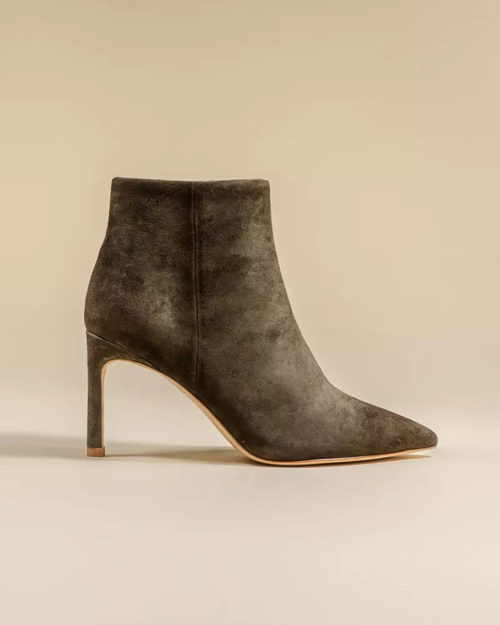Bottines à talon et bout pointu Noura Kaki Suede Mi MAI