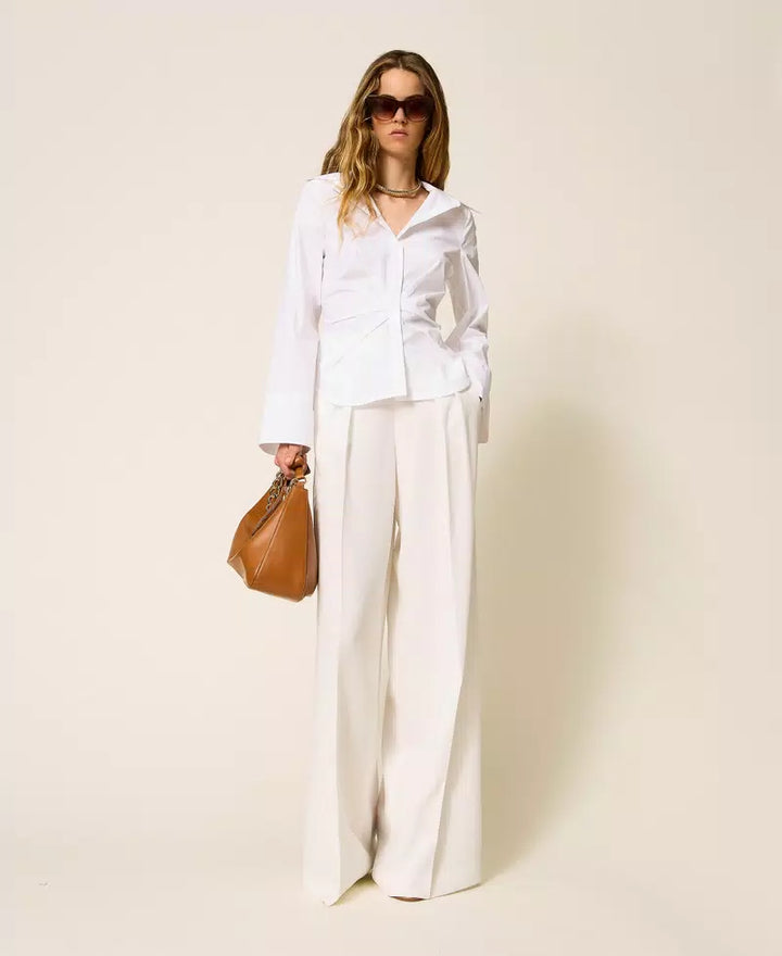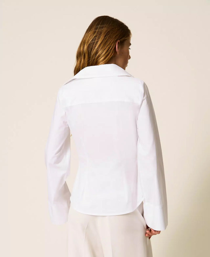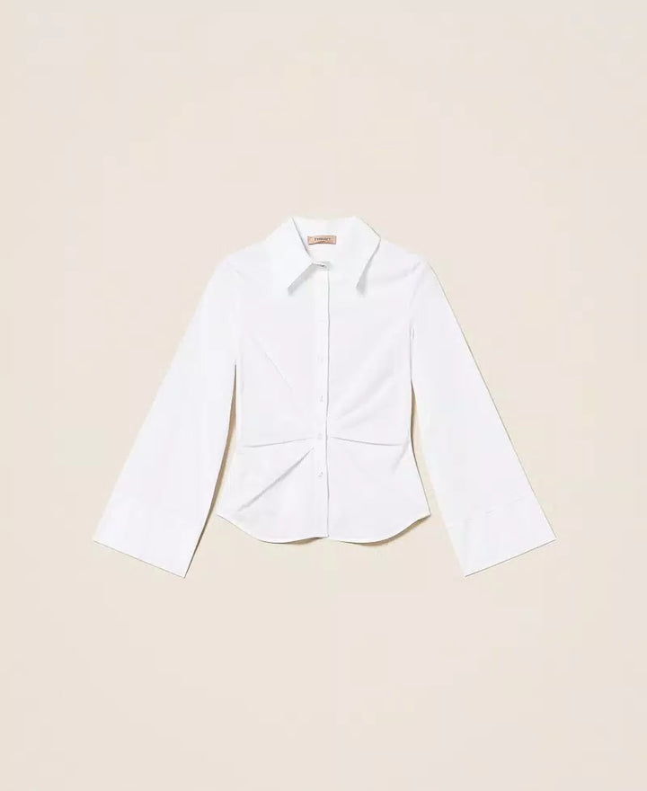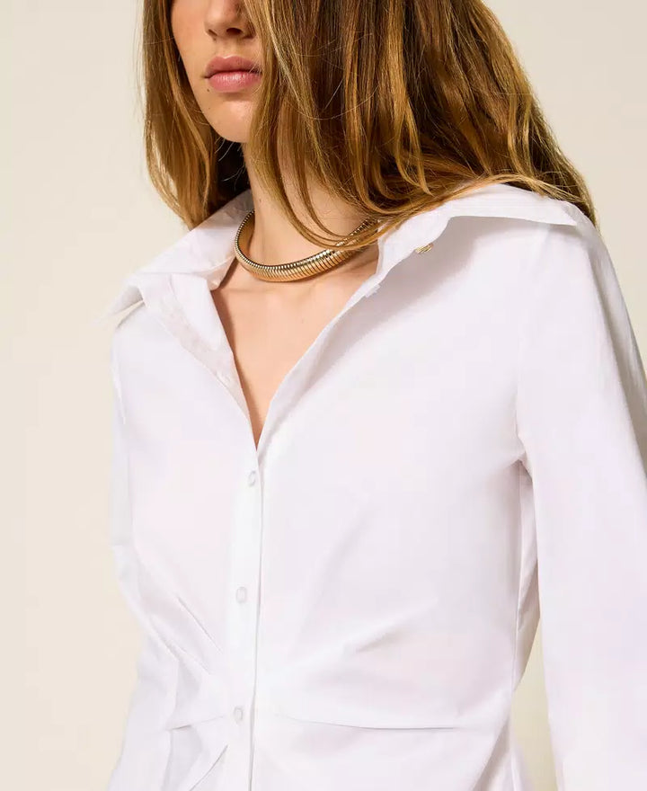 Apportez une touche d’élégance à votre garde-robe avec cette chemise femme en popeline de coton stretch. Son drapé et ses plis à la taille mettent la silhouette en valeur, tandis que sa fermeture boutonnée, ses manches longues et ses poignets à boutons offrent un confort chic au quotidien. Avec sa coupe slim raffinée, cette pièce issue de la collection Archive Twinset s’inspire des pièces iconiques Twinset, pour un style féminin et intemporel.