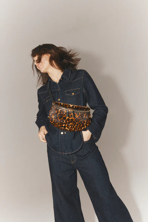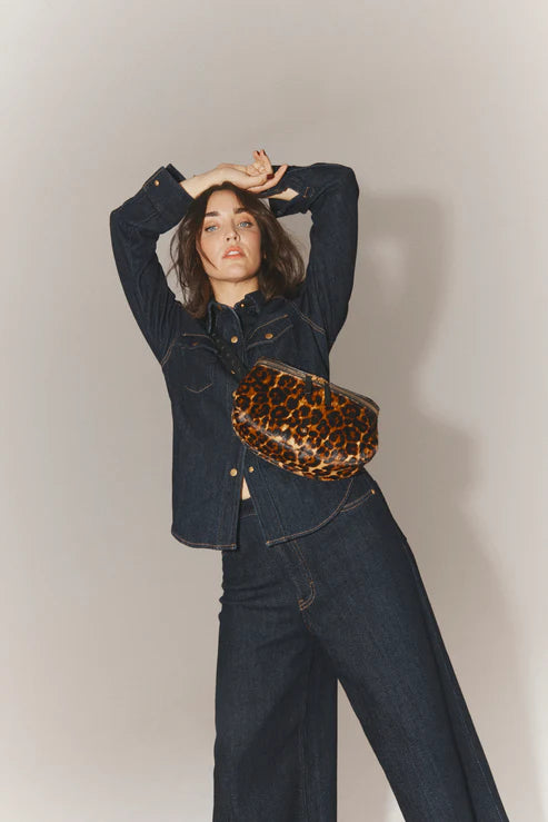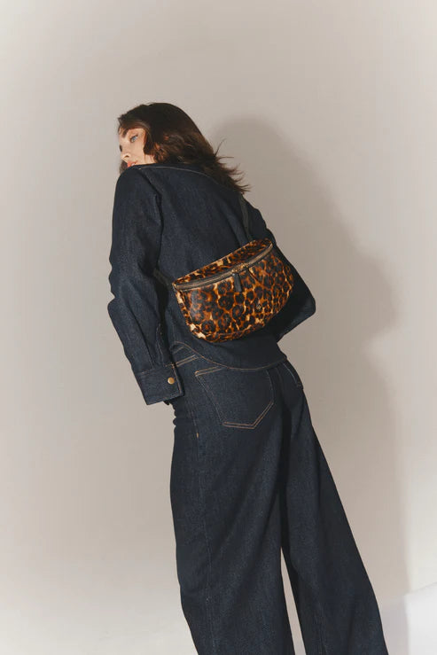 Grande Pochette Banane Léopard & Cuir Noir – Herbert Frère Sœur