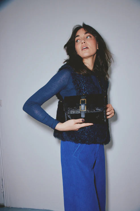 Matière principale : cuir de vachette vernis Crispy Noir