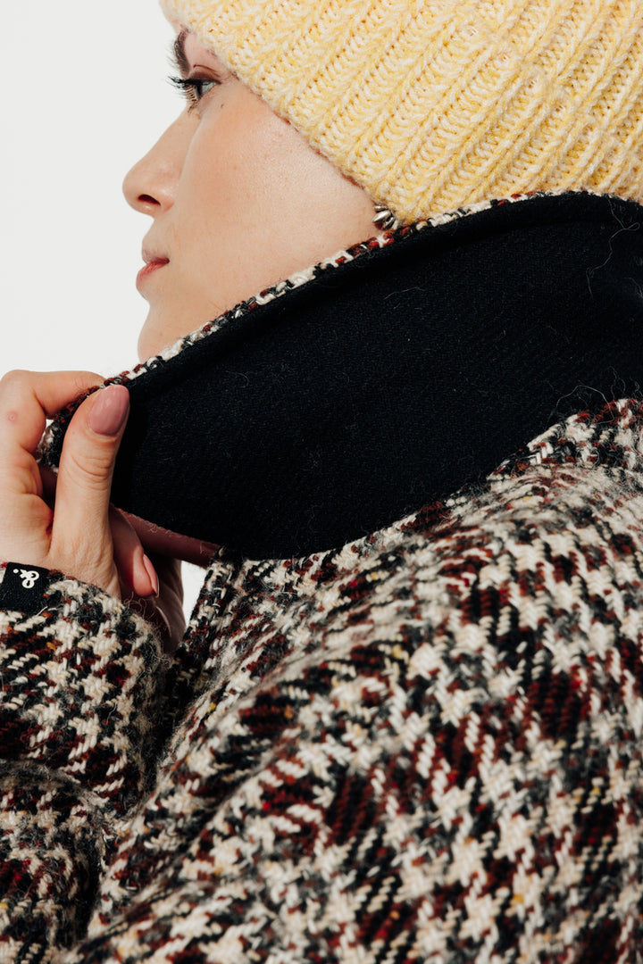 Lainage à carreaux contenant 45 % de laine et 2 % d'alpaga : chaleur, toucher naturel et bel effet matière.