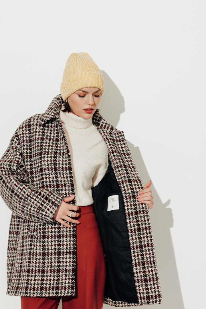 L’indispensable de la saison : le manteau oversize à carreaux en laine signé Trench & Coat. Sa coupe ample et moderne lui confère une allure résolument contemporaine, tandis que son motif carreaux, intemporel et élégant, apporte une touche graphique à toutes vos tenues.