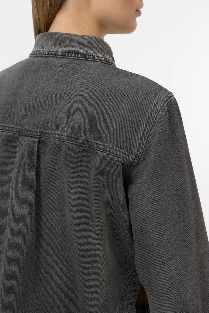 Cette chemise en denim Closed revisite un essentiel du vestiaire avec une coupe classique et un ourlet arrondi qui apporte une touche de modernité. Confectionnée en Italie dans un denim noir teint dans la masse, elle bénéficie d’un lavage répété et d’une teinture minérale, lui offrant une surface profonde, élégante et subtilement texturée.