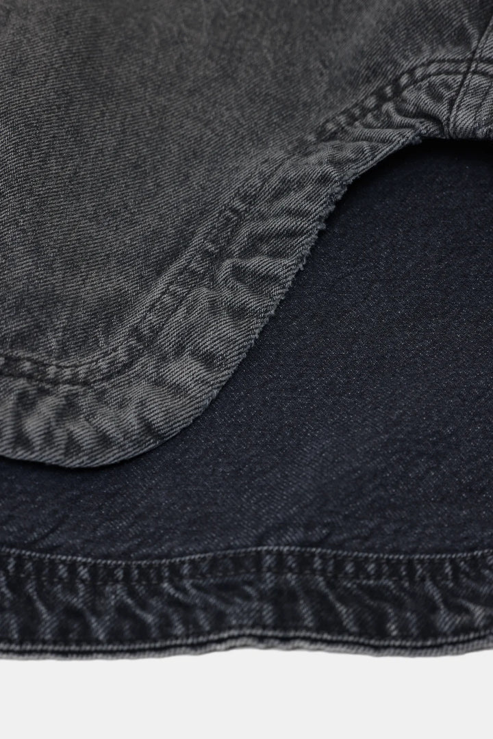 Le denim black intense, travaillé selon un processus minutieux, confère à chaque pièce une finition unique et un caractère authentique. Sa coupe légèrement structurée met en valeur la silhouette tout en garantissant un confort optimal.